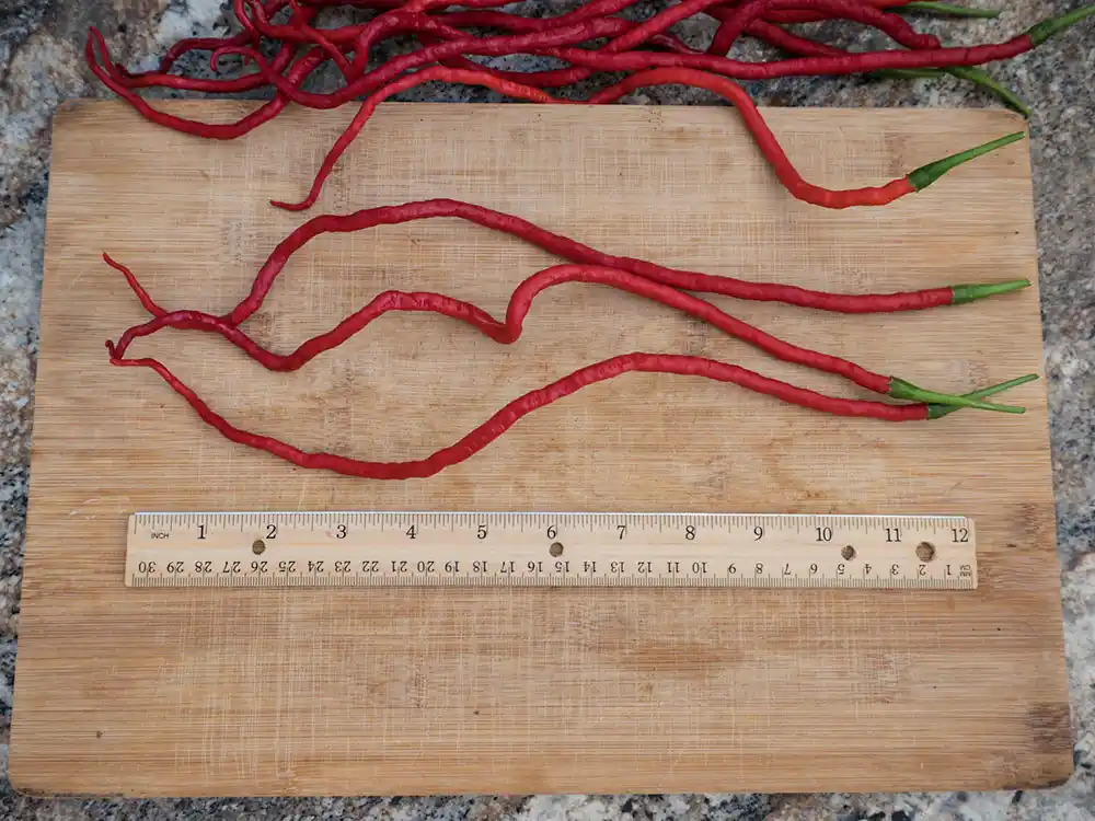 This isn’t just a novelty; it’s a culinary treasure. As these serpent-like peppers twist, curl, and ripen to a deep, brilliant red, they develop an incredible, smoky-sweet flavor that is far richer and more complex than a standard cayenne. The heat is a satisfying, solid kick that perfectly complements its amazing taste. The thin walls make these peppers exceptionally easy to dry, and their primary purpose is to be ground into one of the most aromatic and flavorful chili powders you will ever experience. For a true “bragging rights” pepper that delivers on both unbelievable looks and phenomenal flavor, nothing compares to the Thunder Mountain Longhorn.